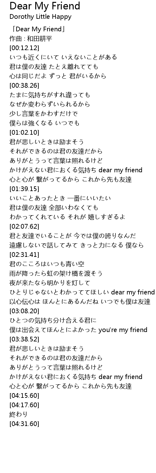 | [03:57.19] | かけがえない君におくる気持ち dear my friend |