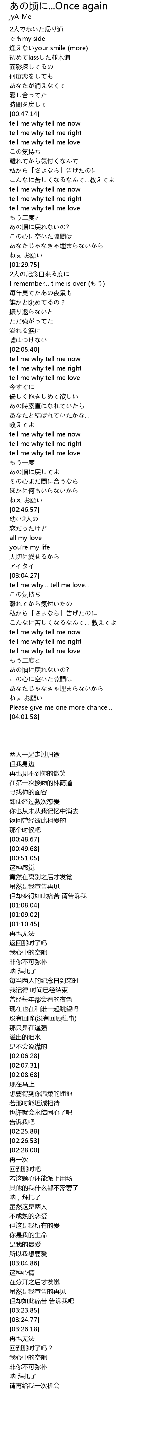 | [03:17.35] | こんなに苦しくなるなんて… 教えてよ |