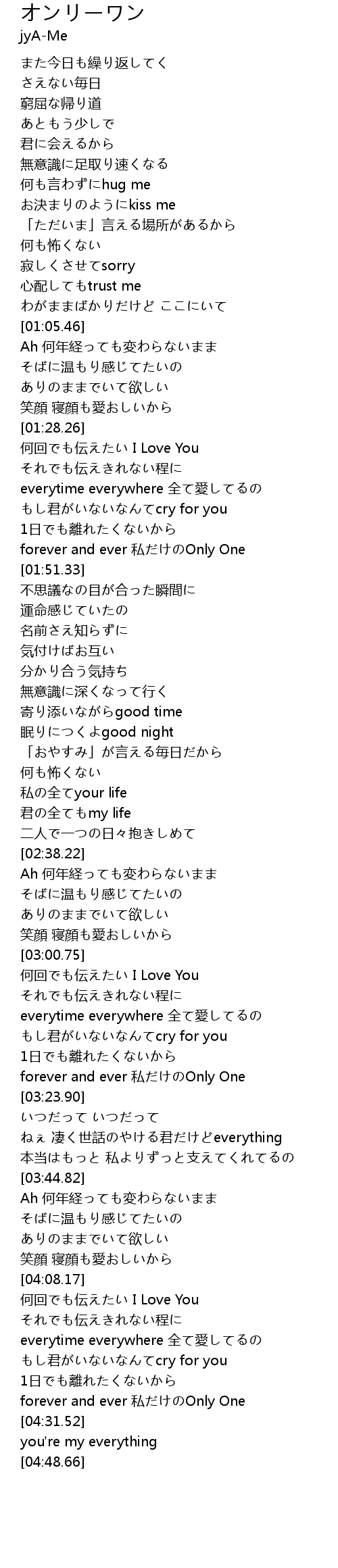 | [04:25.42] | forever and ever 私だけのOnly One |