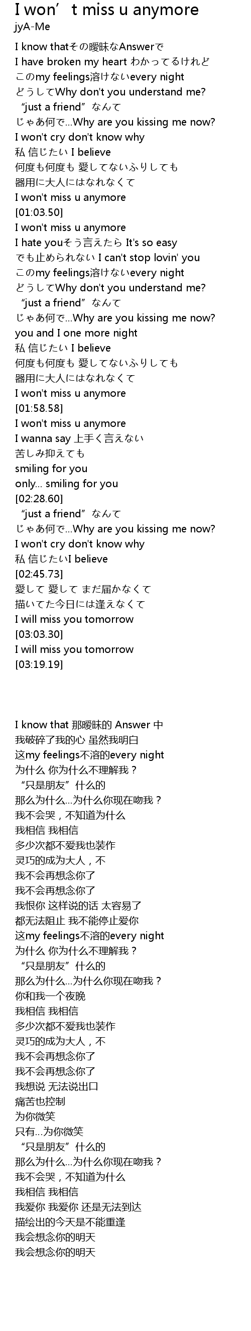 | [00:34.74] | じゃあ何で...Why are you kissing me now? |