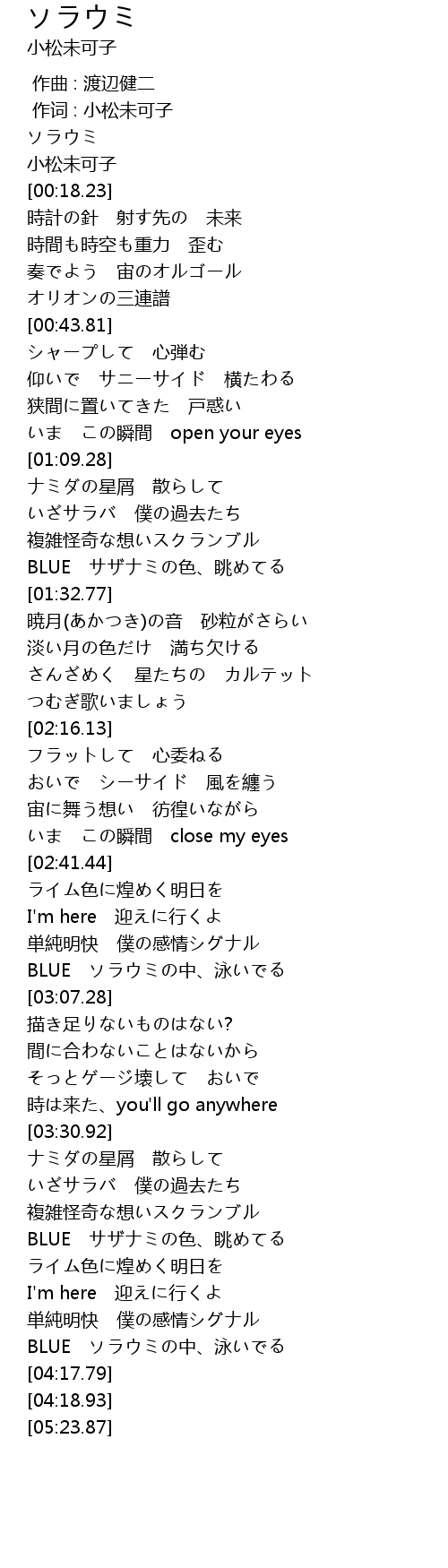 | [04:11.93] | BLUE ソラウミの中、泳いでる |