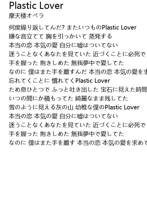 | 何度繰り返してんだ? またいつものPlastic Lover | |
