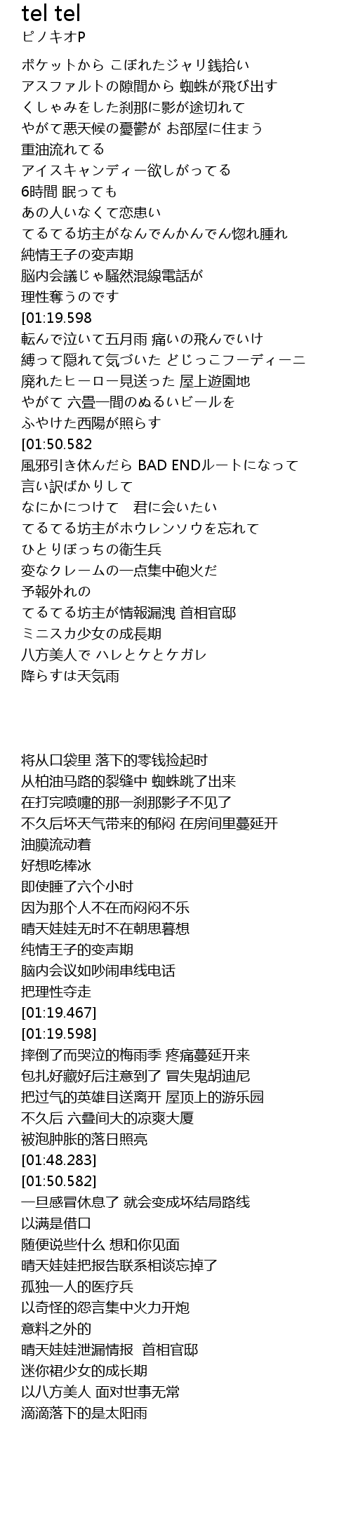 | [01:07.184] | てるてる坊主がなんでんかんでん惚れ腫れ |