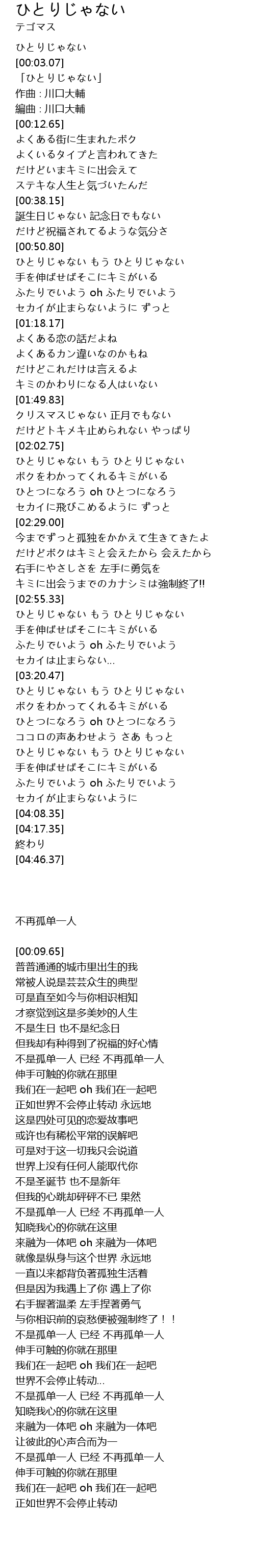 | [02:03.40] | ひとりじゃない もう ひとりじゃない |