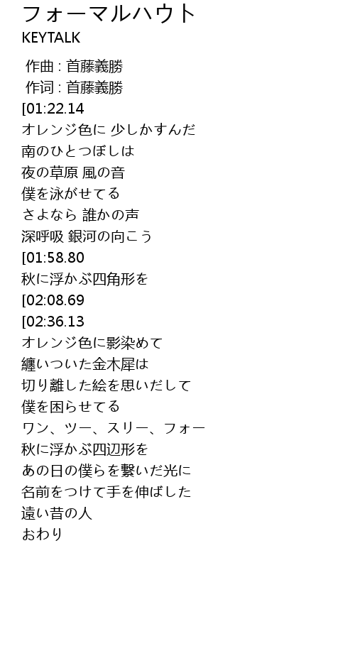 | [02:04.33] | 秋に浮かぶ四辺形を |