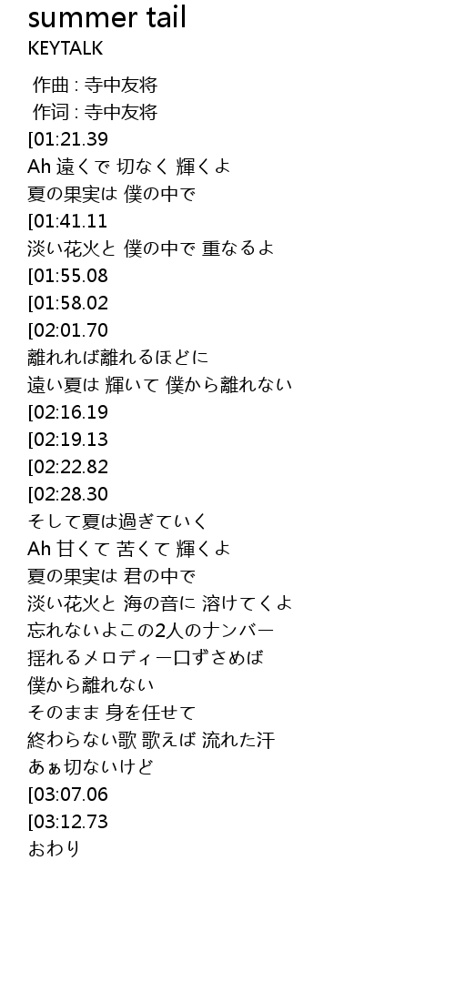 | [03:01.38][03:12.73] | 君と君と 夏のまま |
