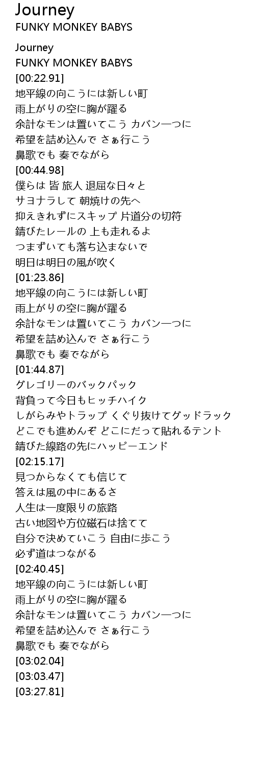 | [00:03.19] | FUNKY MONKEY BABYS |