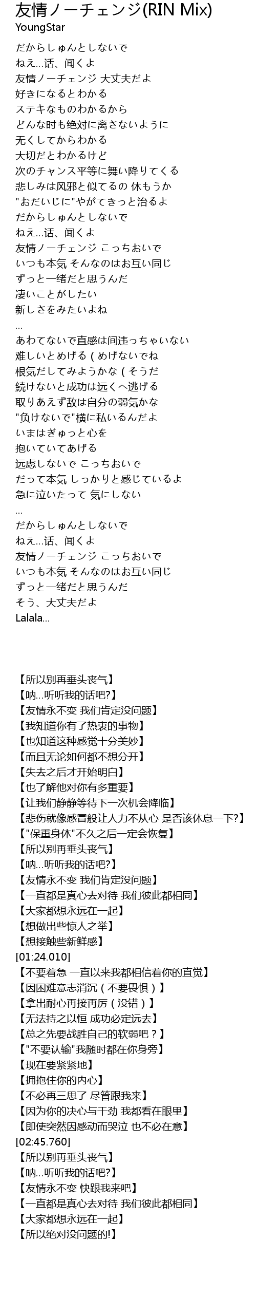 | [00:09.760] | 友情ノーチェンジ 大丈夫だよ |