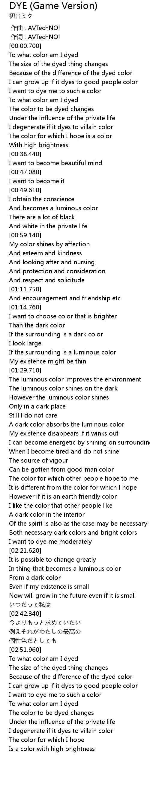 | [00:31.770] | I degenerate if it dyes to villain color |