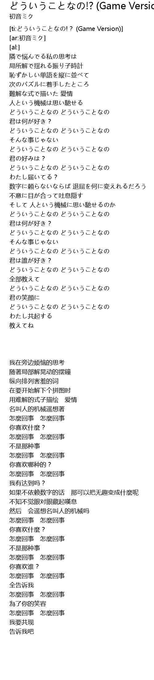 | [ti:どういうことなの!? (Game Version)] | |