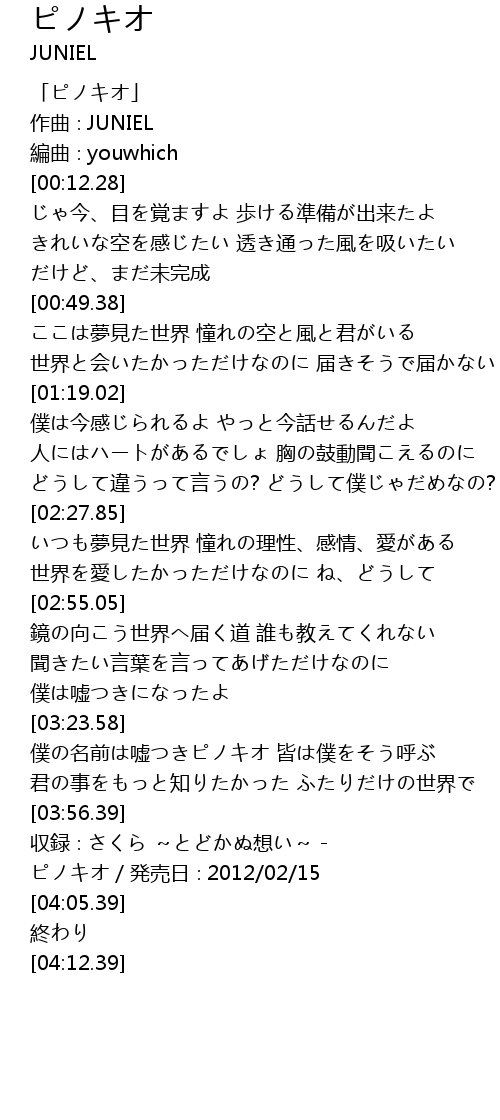 | [00:01.28] | 「ピノキオ」 |
