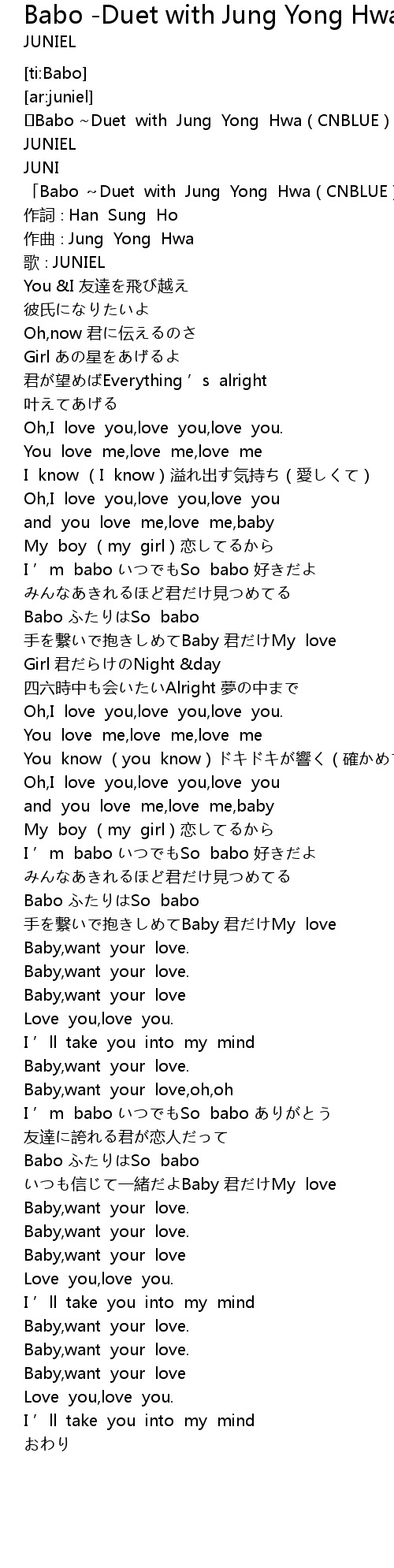 | [00:04.283] | 「Babo ~Duet with Jung Yong Hwa(CNBLUE)」 |
