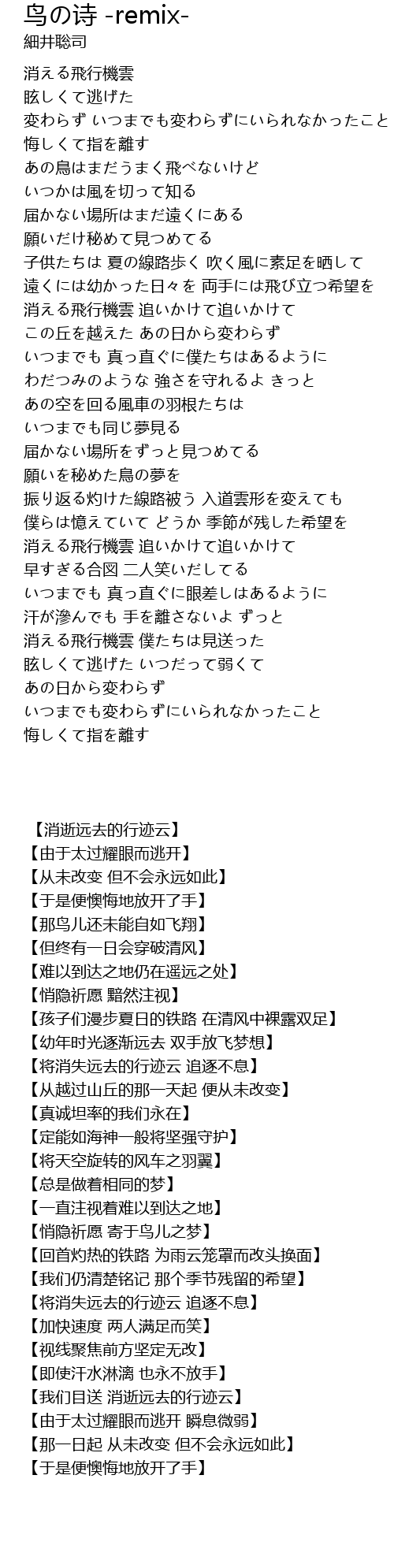 | Song | 鸟の诗 -remix- |