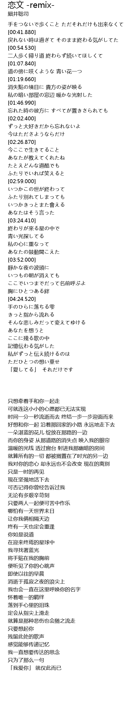 | [00:55.010] | 二人歩く帰り道 終わらず続いてほしくて |