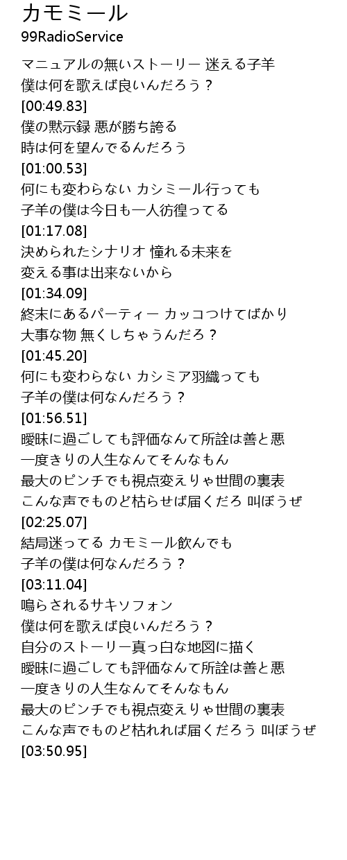 | [01:07.99] | 子羊の僕は今日も一人彷徨ってる |
