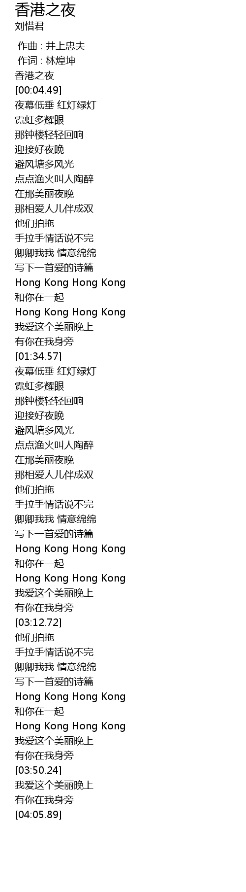 | [02:06.78] | 夜幕低垂 红灯绿灯 |