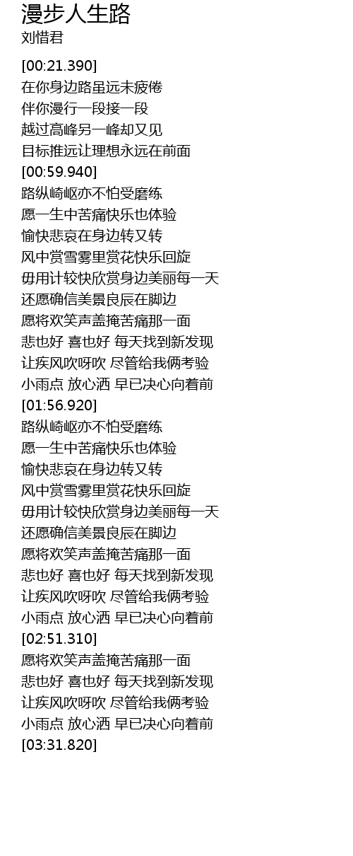 | [03:18.510] | 悲也好 喜也好 每天找到新发现 |