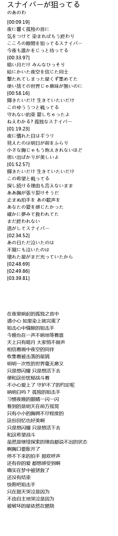 | [00:23.97] | こころの隙間を狙ってるスナイパー |