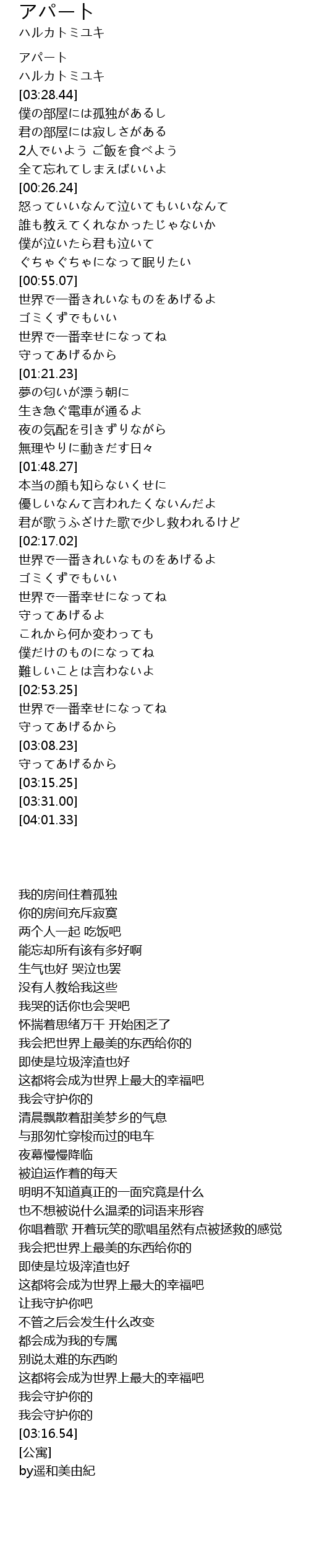 | [00:14.76] | 2人でいよう ご飯を食べよう |