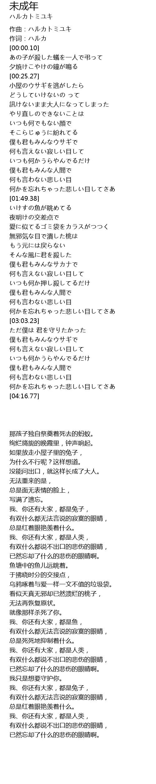 | [03:39.15] | 僕も君もみんなウサギで |