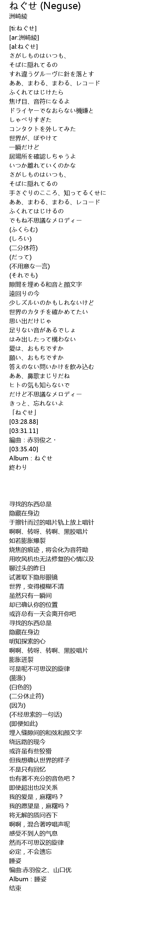 | [03:36.98] | Album:ねぐせ |