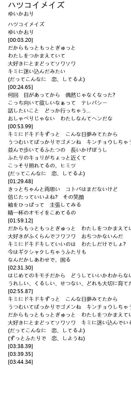 | [02:41.91] | はじめてのキモチだから どうしていいかわからない |