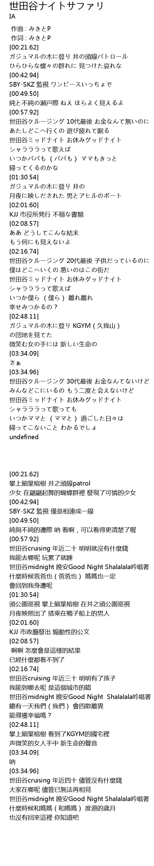 | [03:50.13] | 世田谷ミッドナイト お休みグッドナイト シャラララって歌っても |