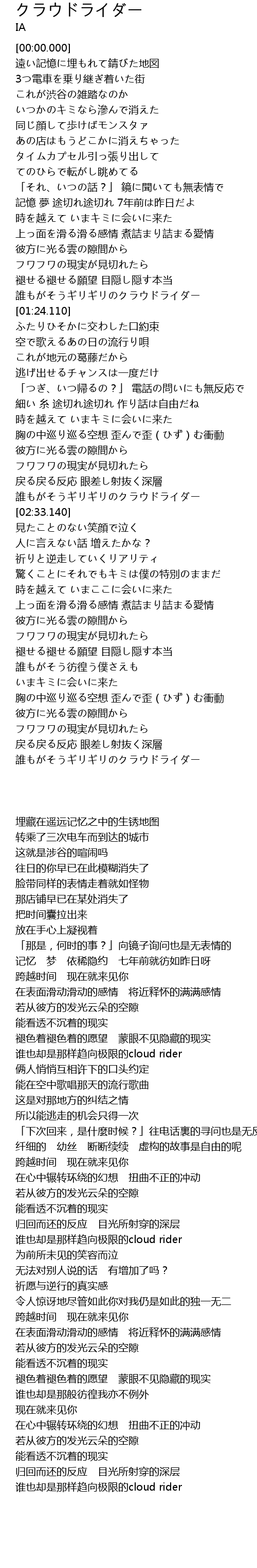 | [01:18.300] | 誰もがそうギリギリのクラウドライダー |
