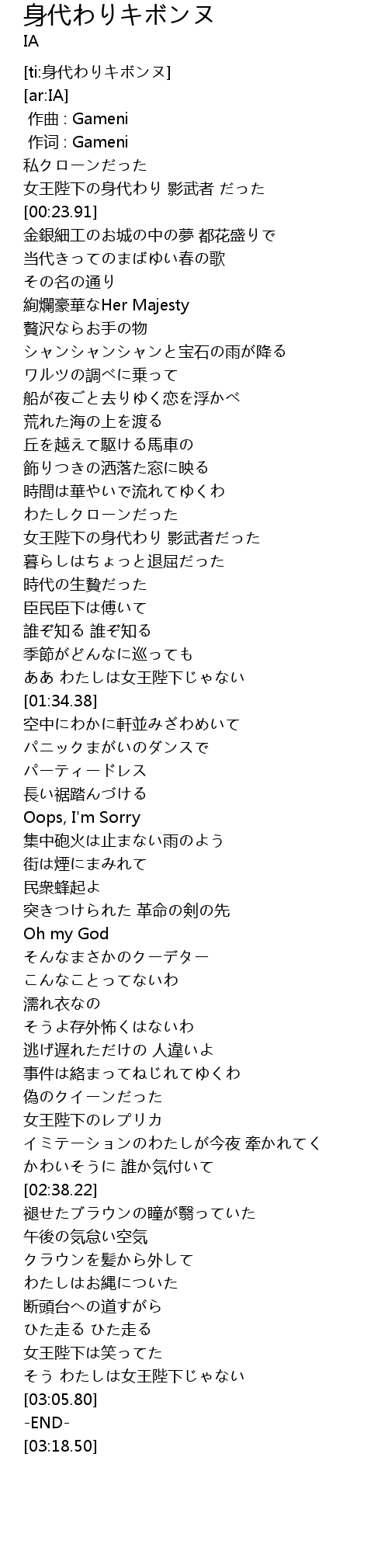 | [03:01.83] | そう わたしは女王陛下じゃない |