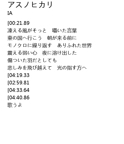 | [01:33.38][04:40.86] | 辿り着く その時まで 懐かしい歌 |