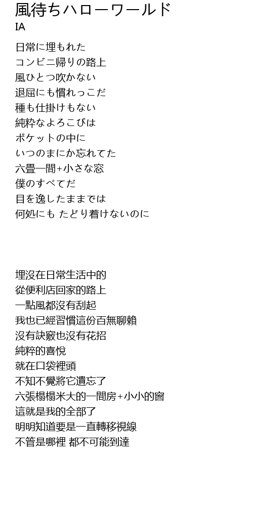 | Song | 風待ちハローワールド |