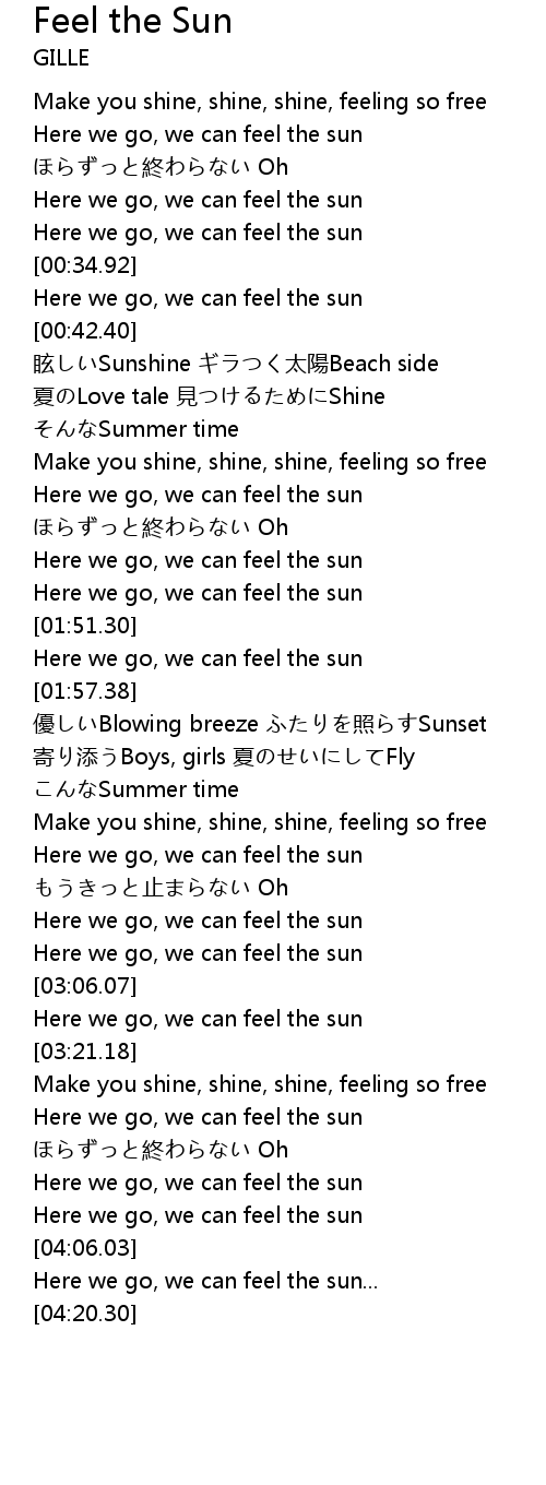 | [03:30.93] | Make you shine, shine, shine, feeling so free |