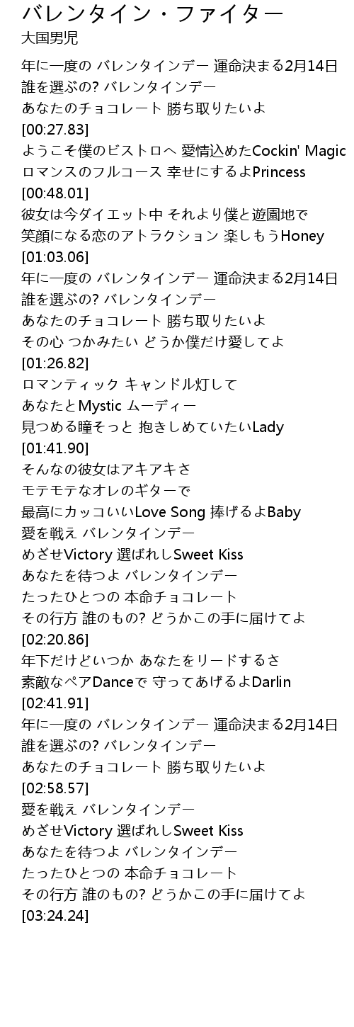 | [01:57.32] | 愛を戦え バレンタインデー |