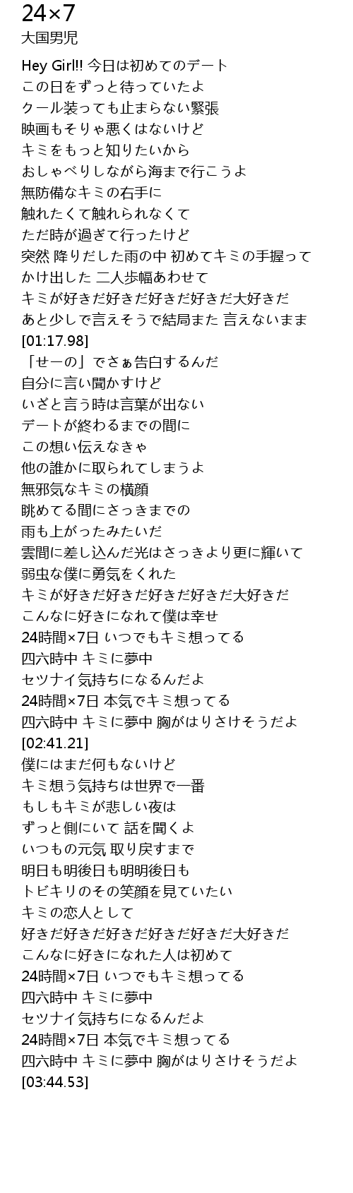 | [03:24.78] | 24時間×7日 いつでもキミ想ってる |
