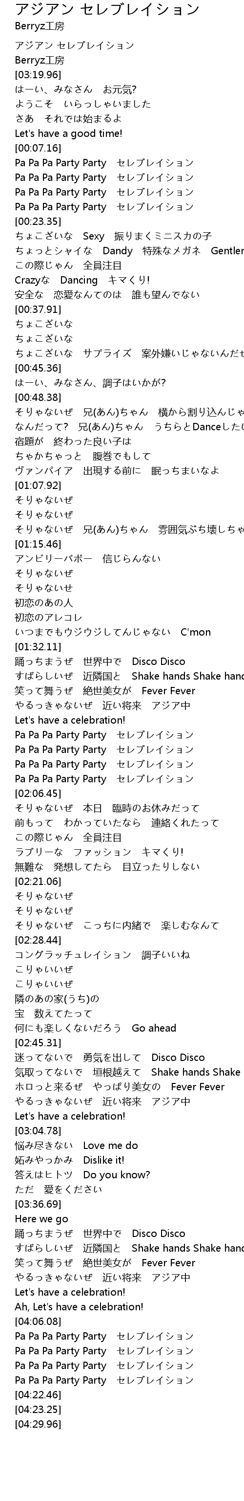| [00:19.72] | Pa Pa Pa Party Party セレブレイション |