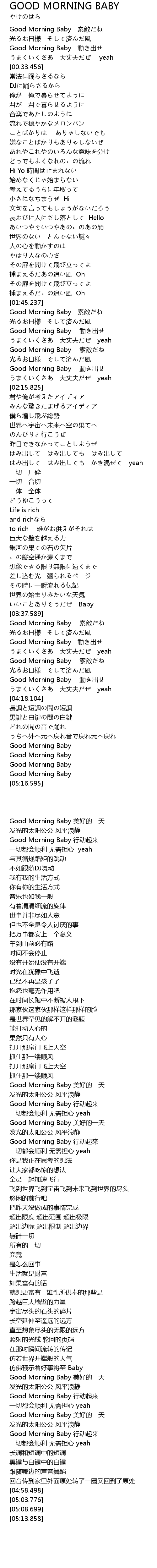 | [01:54.751] | Good Morning Baby 素敵だね |