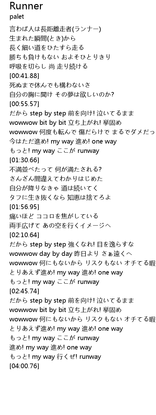 | [00:18.49] | 言わば人は長距離走者(ランナー) |