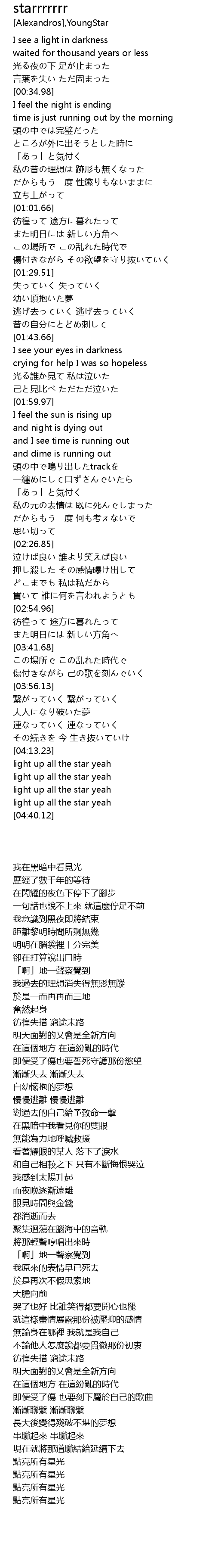 | [03:48.44] | 傷付きながら 己の歌を刻んでいく |