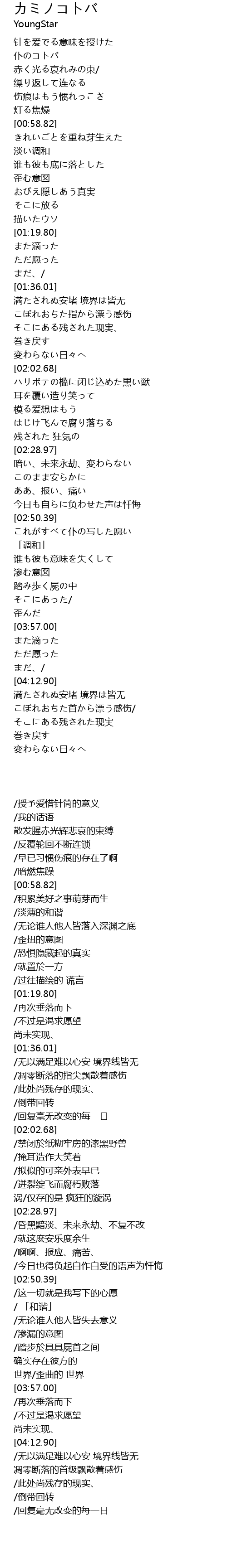 | [04:13.36] | 満たされぬ安堵 境界は皆无 |