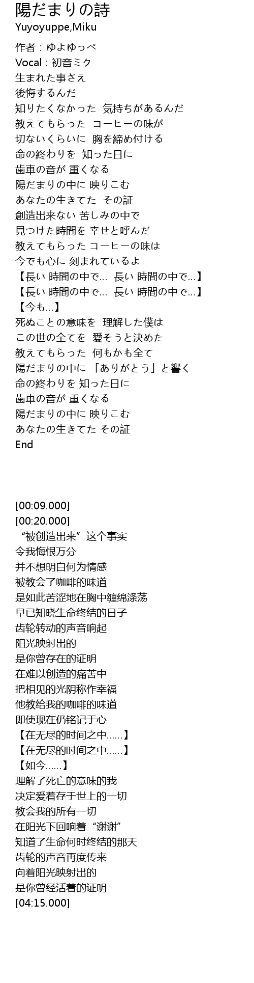 | [00:20.000] | Vocal:初音ミク |