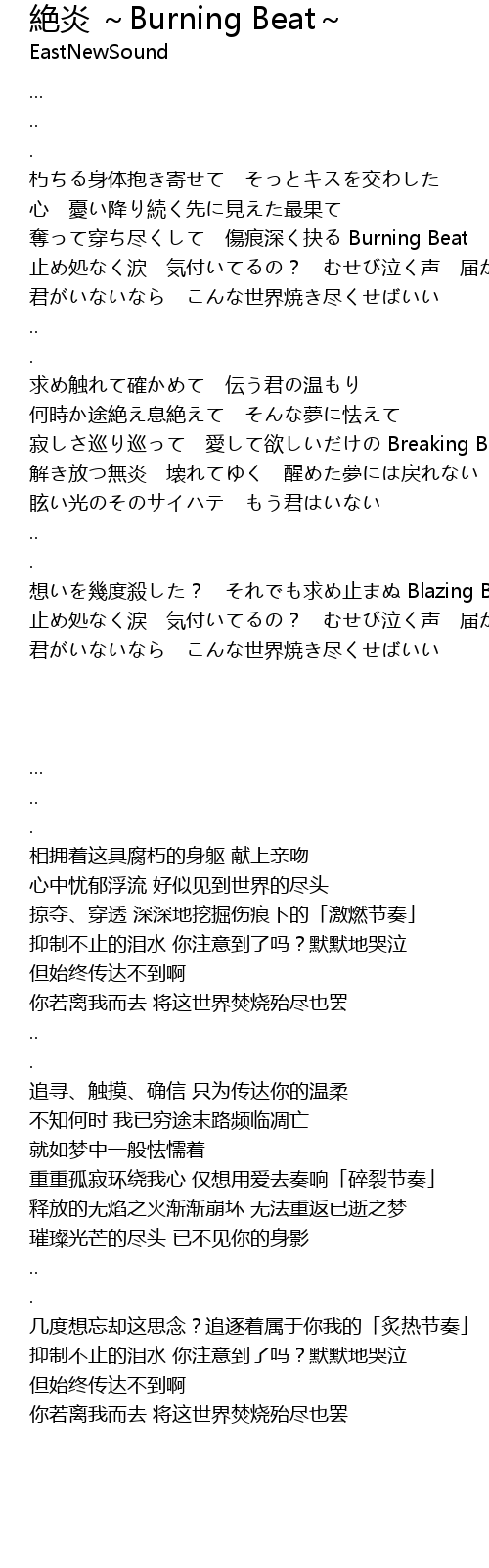 | [03:36.82] | 想いを幾度殺した? それでも求め止まぬ Blazing Beat |