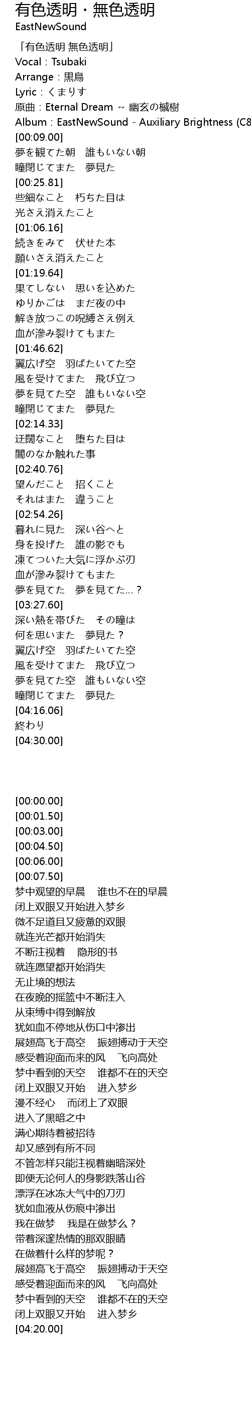 | [00:07.50] | Album: EastNewSound Auxiliary Brightness C83 |