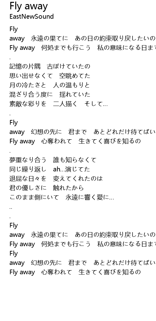 | [04:01.66] | Fly away 心奪われて 生きてく喜びを知るの |