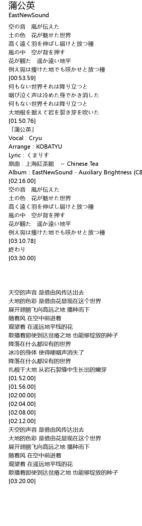 | [01:52.00] | 「蒲公英」 |