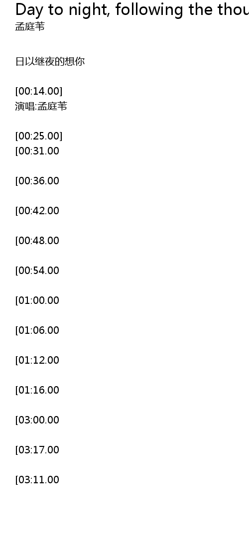 | [03:29.00][03:17.00][03:06.00][01:29.00] | 日以继夜的想你 |
