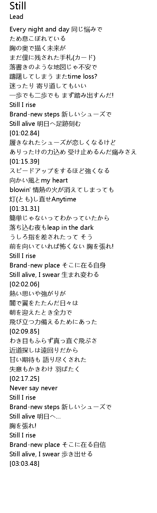 | [02:40.49] | Still alive 明日へ… |