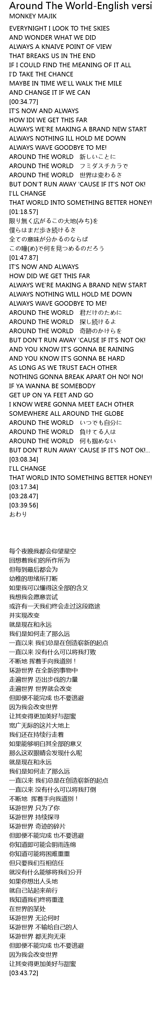 | [02:18.88] | AROUND THE WORLD qi ji |