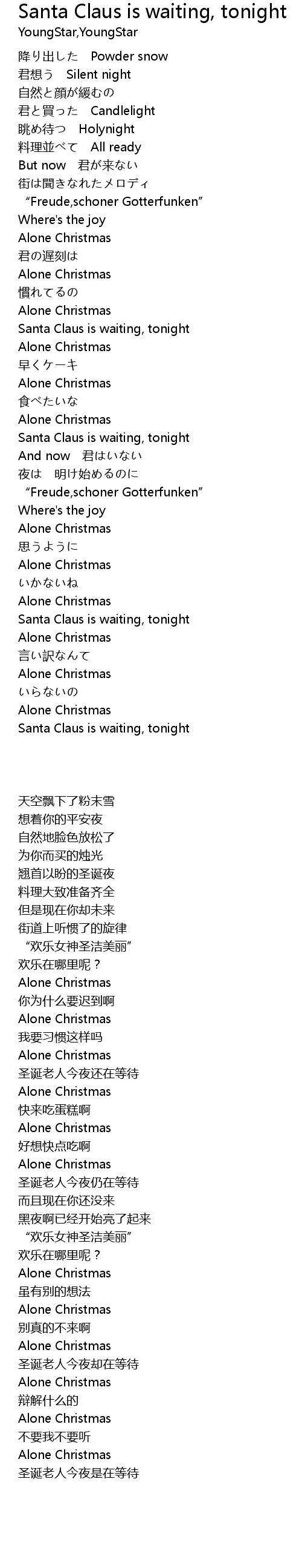| [02:19.00] | Santa Claus is waiting, tonight |