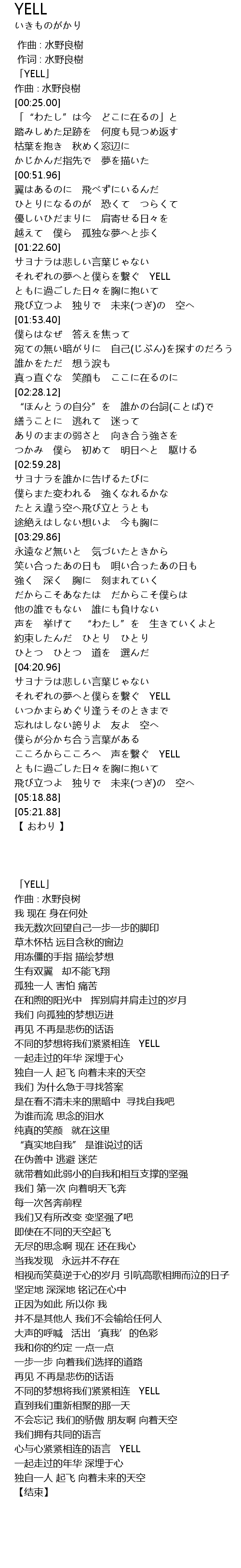 | [04:30.01] | それぞれの夢へと僕らを繋ぐ YELL |