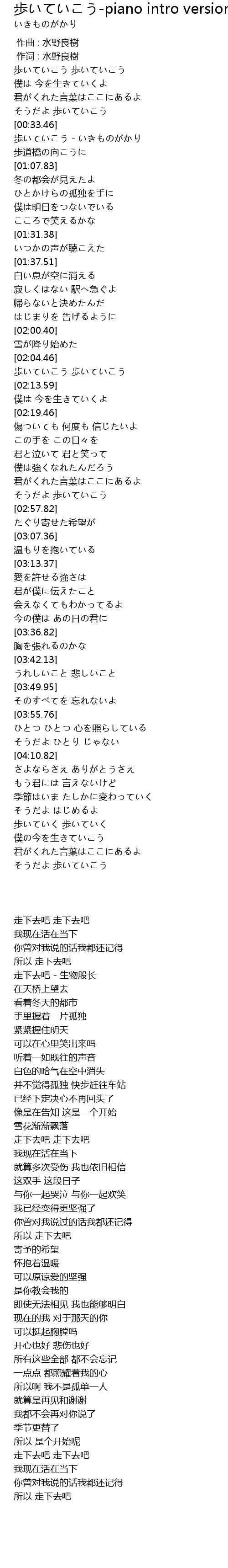 | [00:00.70] | 歩いていこう 歩いていこう |